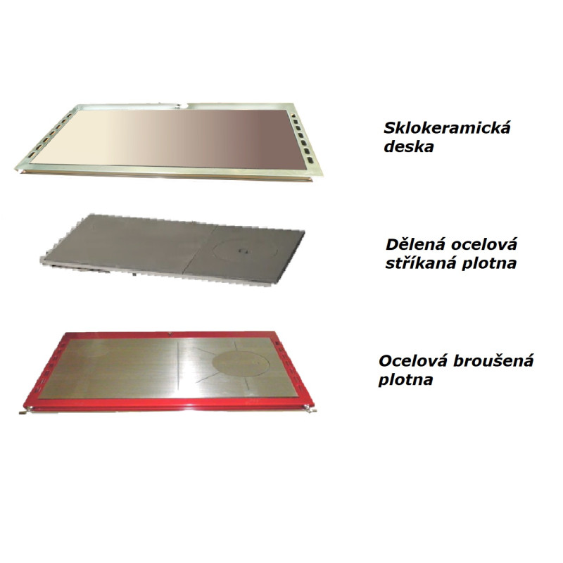 | Varianty provedení plotny: | ocelová broušená, nebo sklokeramická |