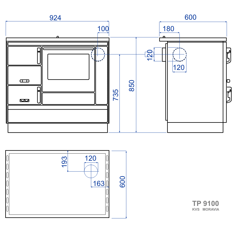 | Rozměry sporáku (šxvxh): | 924 x 850 x 600 mm |