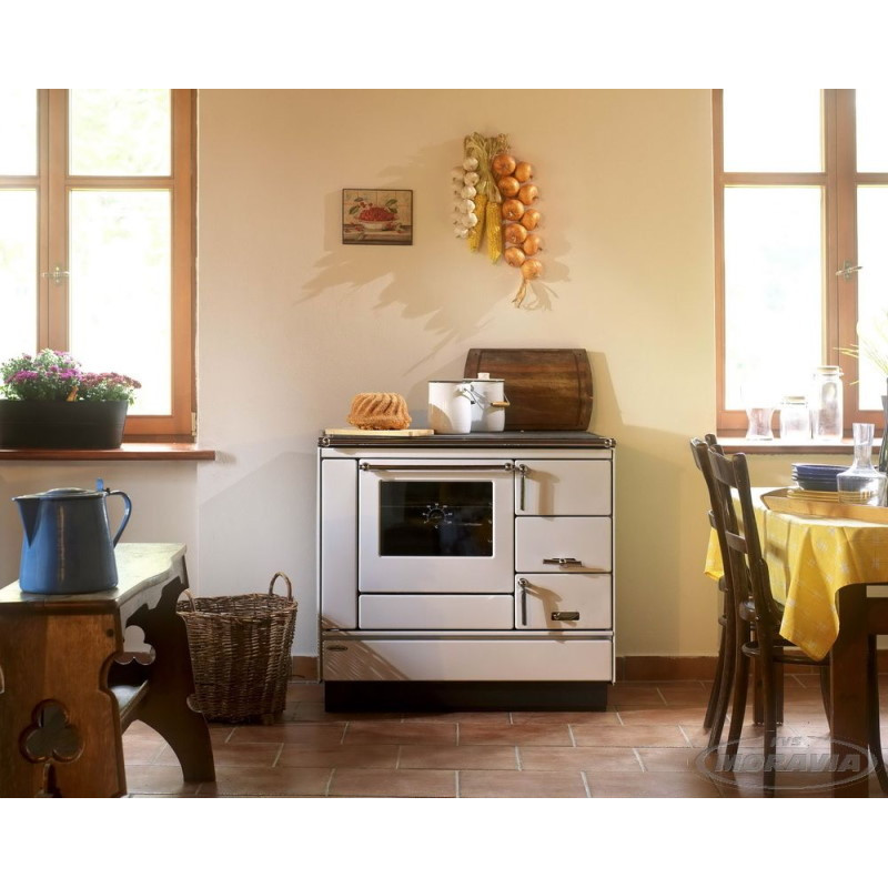 Sporák na pevná paliva s troubou typ 9100 je určen k vytápění, vaření, pečení a ohřívání pokrmů. Tento sporák se vyrábí také v provedení s teplovodním ohřívačem vody (typ 9100-V). Rozměrné topeniště lze snadno přestavit na letní nebo zimní provoz (vyjímatelný horní rošt). Jedna z mnoha dalších výhod je variabilita napojení na komín.