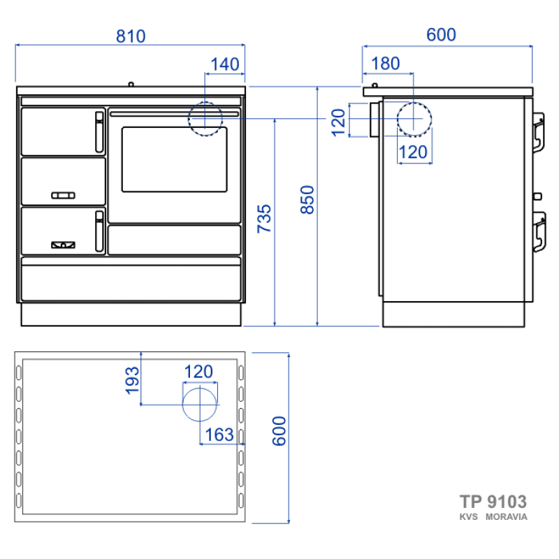 Sporák na pevná paliva s troubou VSP 9103 šíře 810 mm je konstruován na spalování pevného paliva, jako jsou dřevo a dřevěné brikety.