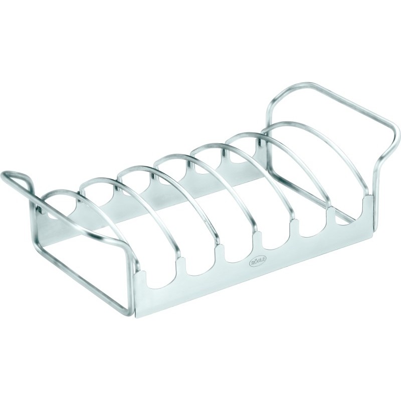 Kdo by nemiloval grilovaná žebírka? S praktickým a robustním stojanem na grilu upečete vynikající vepřová žebra. Taková jste ještě nejedli! Svislé grilování žebírek a kotlet ve stojanu šetří místo na grilu. Je možné ho využít i na pečení většího kusu masa – při obrácení stojan svým tvarem připomíná grilovací koš, do kterého maso umístíte. Materiál z nerezové oceli zaručuje snadnou údržbu a vysokou kvalitu. Praktická madla usnadňují manipulaci se stojanem. Držák na žebra a pečené maso je vhodný pro plynové grily i grily na dřevěné uhlí s minimálním průměrem 47 cm.