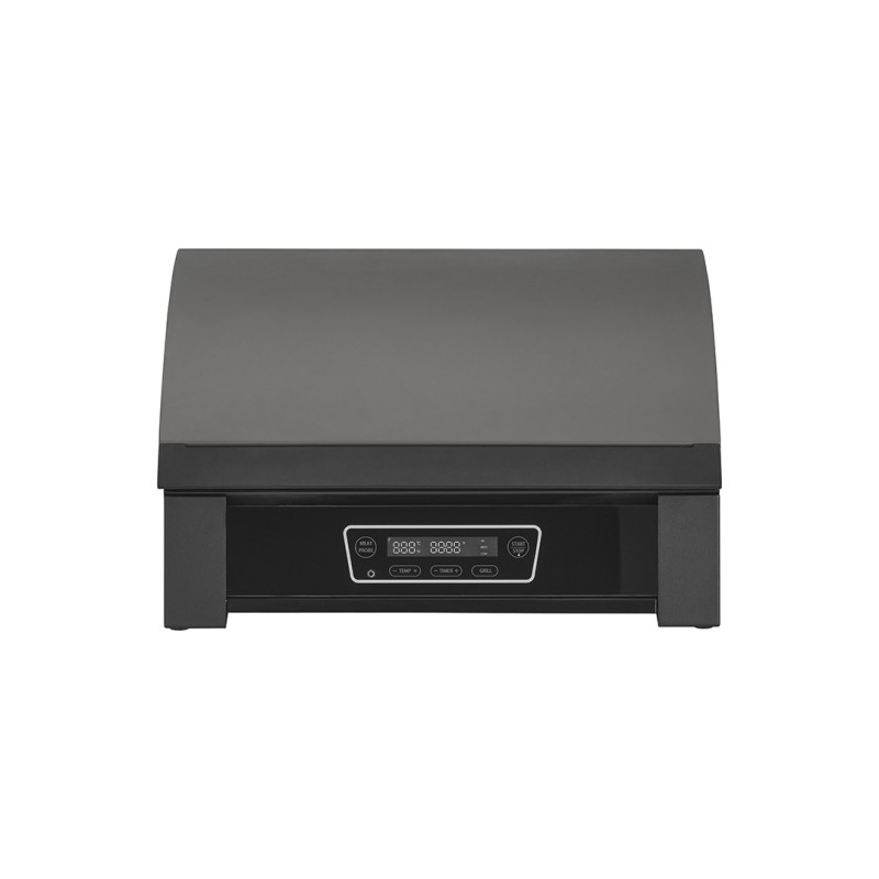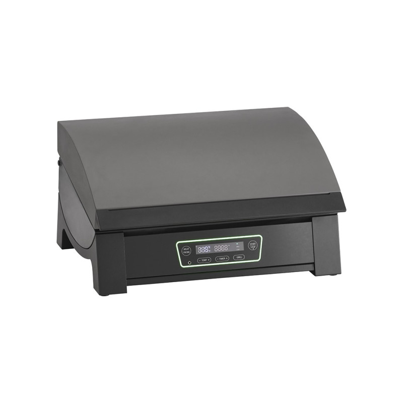 Elegantní přenosný stolní elektrický. Ideální gril na balkon nebo terasu. Díky své nízké hmotnosti se však stejně dobře hodí na Vaší dovolenou, kempování, chalupaření, chataření, pro přípravu pokrmů na zahradě. Je rovněž vhodný rovněž do karavanu nebo obytného vozu. Litinová grilovací plocha je z poloviny tvořena grilovacím roštem s mřížkou a z poloviny grilovací deskou pro grilování drobných pokrmů, zeleniny, klobásek, vajec, omelet a palačinek. Ovládání je snadné a intuitivní díky přehlednému displeji, na kterém se volí délka a úroveň grilování (Hi/Med/Low) a požadovaná teplota masa. Součástí dodávky je teplotní sonda, která umožní sledovat teplotu uvnitř grilovaného pokrmu během grilování. Gril má krásný design a uspokojí každého milovníka nenáročného grilování.
