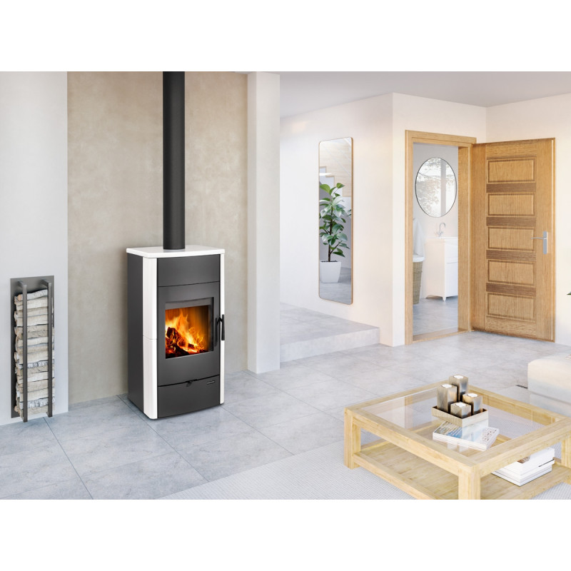 Teplovodní krbová kamna jsou vhodná pro nízkoenergetické domy díky dvěma sklům ve dveřích kamen. Účinný teplovodní výměník o objemu 28l dokáže přenést do vody 70% energie a 30% do vzduchu. Inovativní systém vedení spalin DOUBLE SPIN zvyšuje účinnost kamen. Kamna disponují systémem CPV – centrální přívod externího vzduchu. Ve standardu je možné zapojení horního odvodu spalin. Díky sekundárnímu přívodu vzduchu je sklo dvířek omýváno, a tak nedochází k usazování nečistot. Spalovací komora je vyložena šamotovými tvarovkami. Regulaci primárního a sekundárního přívodu vzduchu lze řídit jediným ovládacím prvkem. Ve spodní části kamen je uzavíratelný dřevník, který umožnuje uskladnění menší zásoby dřeva nebo krbového nářadí. Kamna jsou vybavena vychlazovací smyčkou proti přetopení výměníku..