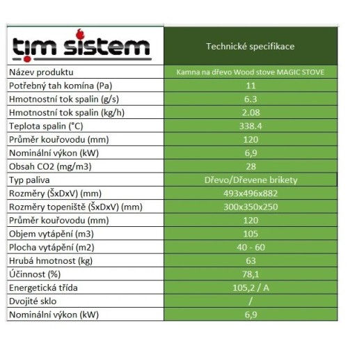 TIM SISTEM, krbová kamna na TP Magic Stove, 6,9 kW, modrá