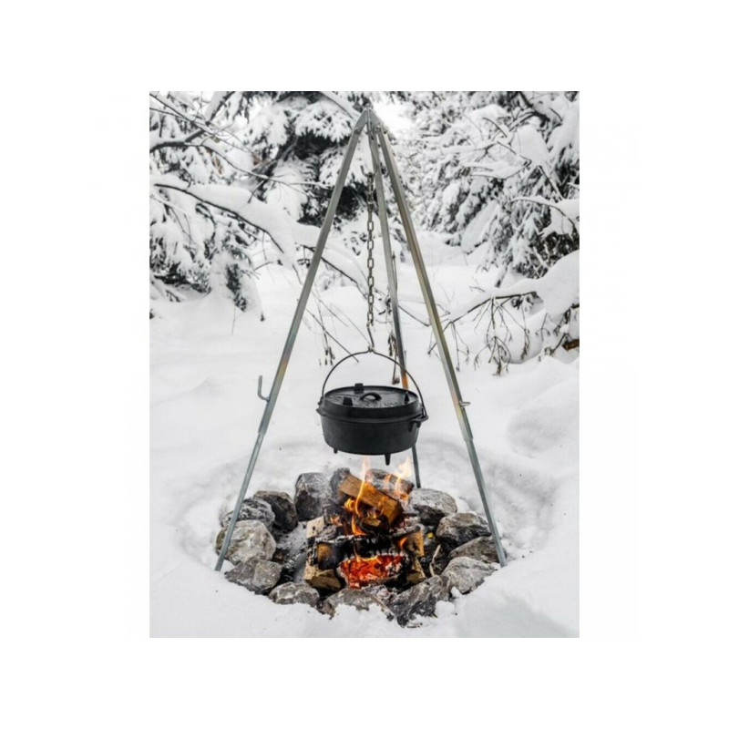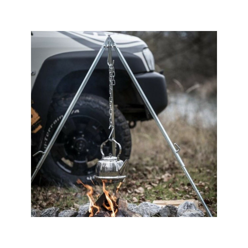 S trojnožkou Petromax si vaření na venku v přírodě užije každý. Na trojnožku lze snadno a bezpečně zavěsit konvici na čaj nebo kotlík. Díky variabilnímu řetězu lze vzdálenost mezi kotlíkem a ohněm kdykoli snadno upravit. Zkosené hrany zajišťují, že trojnožka bude pevně a bezpečně stát na všech druzích povrchů. Každá noha je samostatně výškově nastavitelná.