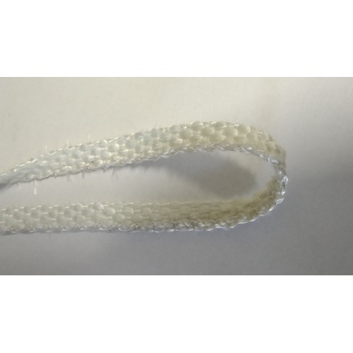 Vysoce kvalitní plochá žáruvzdorná šňůra, upletená do pevného plochého tvaru ze skleněné bílé příze ECO. Těsnění je elektricky nevodivé.