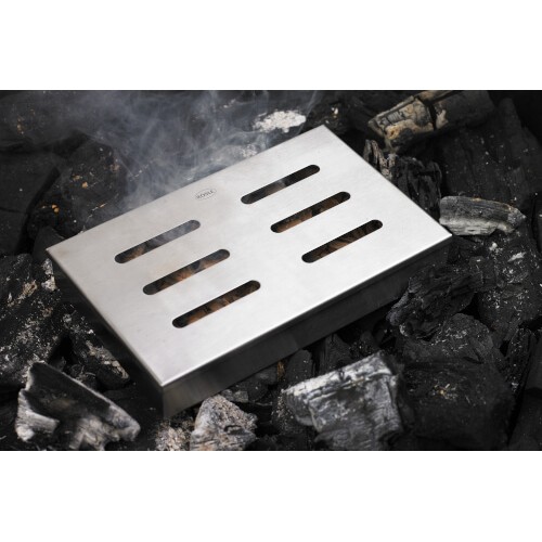 Maso s použitím udícího nerezového boxu získává nezaměnitelnou aromatickou uzenou chuť. Udící box je vhodný pro použití na plynových grilech i pro grily na dřevěné uhlí. Díky otvorům v udícím boxu grilované pokrmy nasají příjemnou vůni dřeviny a sladkou kouřovou příchuť. Uzení na grilu je snadnější, než si myslíte! Stačí si jen vybrat, jakými voňavými dřevěnými lupínky udící box naplníte a připravit si vaše oblíbené maso k uzení.