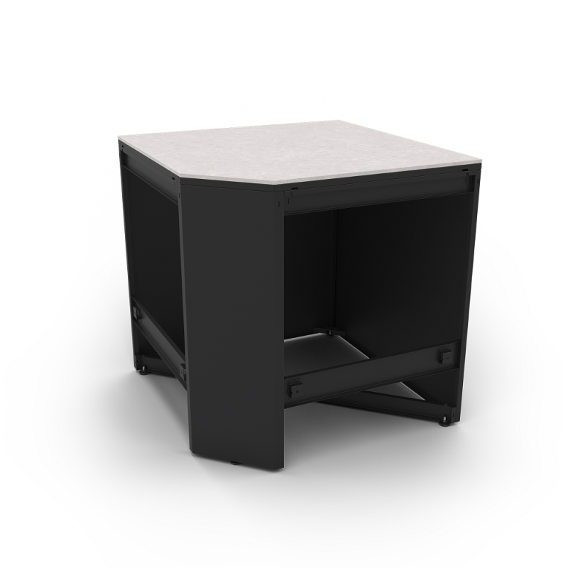 Sestava ideální pro ty, kteří vlastní velkorysý prostor a hledá rohovou venkovní kuchyni. Vybavte se tímto prostorným a komplexním setem, kterým získáte kout kulinářského luxusu v exkluzivním designu. Pracovní deska je vyrobena ze slinutého kamene, který se vyznačuje extrémní odplností vůči poškrábání, UV záření, výkyvům teplot, působení chemikálií a povětrnostních vlivů. Každou kuchyňskou sestavu ELYSIA doporučujeme ukončit bočními panely END, a to na každé straně kuchyně.