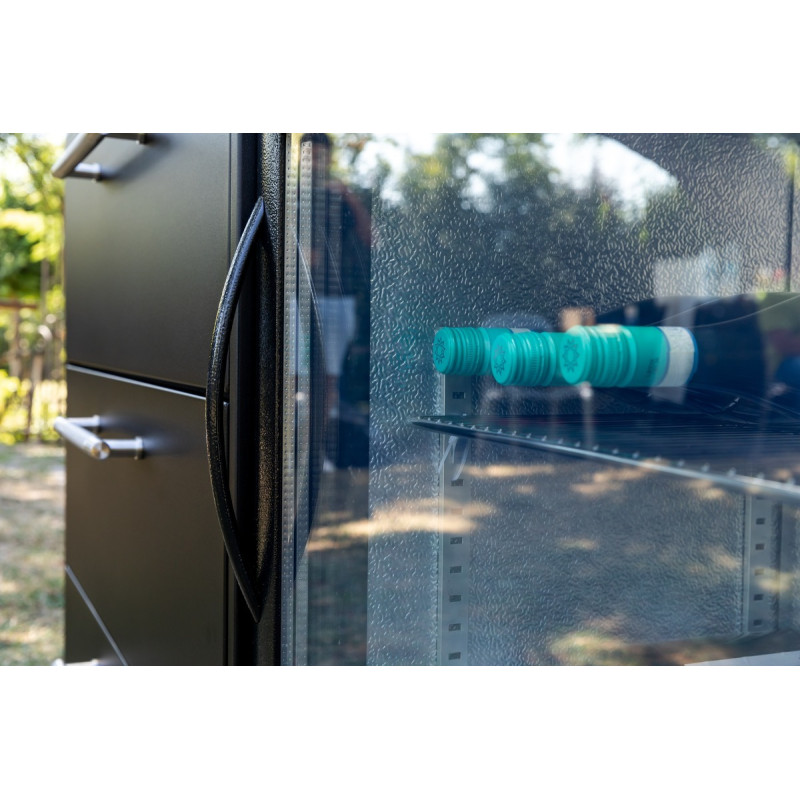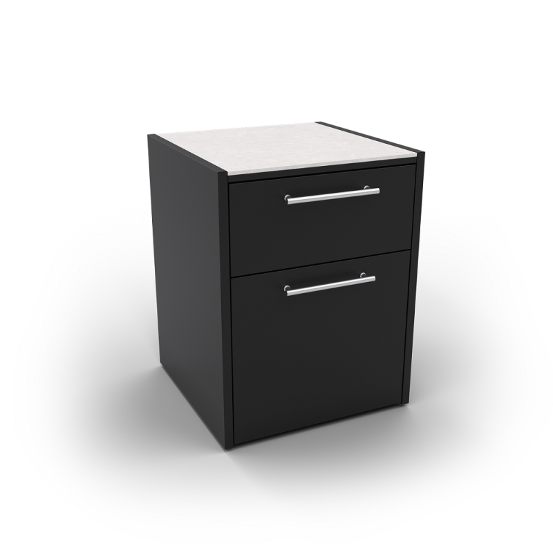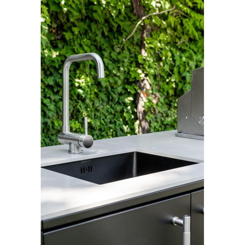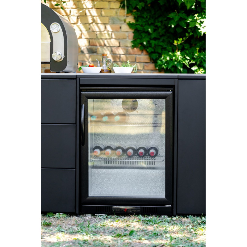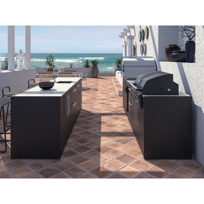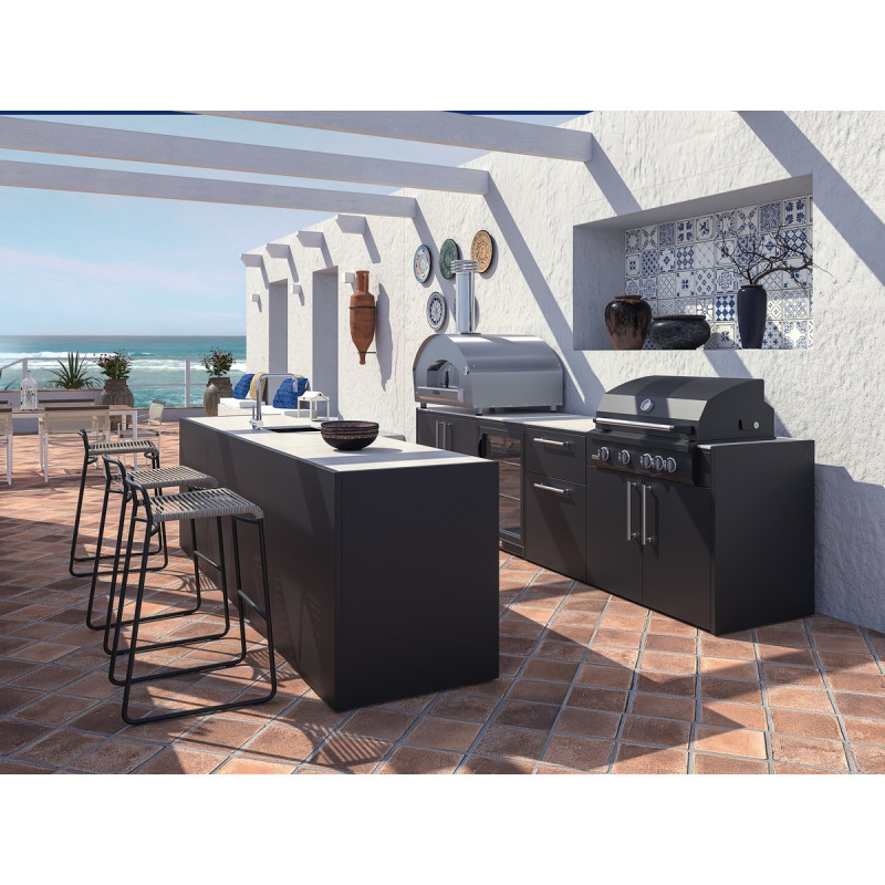 Sestavte si venkovní varné centrum dle Vašich představ a požadavků. Poskládejte k sobě jednotlivé kuchyňské skříňky a získejte pro Vaší terasu, zahradu nebo pergolu dokonalé místo pro venkovní vaření. Všechny skříňky jsou vyrobeny z kvalitní pozinkované oceli a opatřené práškovým nástřikem v černé barvě. Vršek každé skříňky je osazen odolnou pracovní deskou Neolit ze slinutého kamene. Nabídka skříněk je opravdu pestrá a umožní každému vybrat to pravé. Obyčejné skříňky se zásuvkami nebo policemi nabízejí dostatek úložného prostoru a pracovní plochy, na kterou lze popřípadě postavit pizza pec nebo jakýkoliv jiný spotřebič. Pod pizza pece jsou určeny konkrétní skříňky, šířkou odpovídající různým modelům pecí. Skříňky s plynovým grilem mohou tvořit pomyslné srdce každé venkovní kuchyně. Mycí zónu získáte pořízením skříňky s nerezovým dřezem. Chladící zónu následně s kříňkou s lednicí. Možnosti tepelné úpravy pokrmů rozšíří skříňka s 2-hořákem. Rohový modul umožňuje instalaci kuchyně do rohu. Chcete-li mít součástí Vaší venkovní kuchyně keramický gril kamado, pak jej lze postavit na, k tomu určenou, nízkou skříňku.