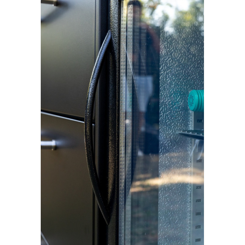 Venkovní kuchyně ELYSIA lze opatřit – vyjma základní černé barvy – ve 110 odstínech RAL. K dispozici je popřípadě vrchní deska Neolith v černém provedení, stejně jako černá madla. Navrhněte si kuchyni přesně dle Vašich představ a požadavků. S venkovní kuchyní ELYSIA je to naprosto reálné. Důležitou zprávou je, že cena kuchyně je pro všechny barevné alternativy skříněk, vrchní desky a madel stejná.