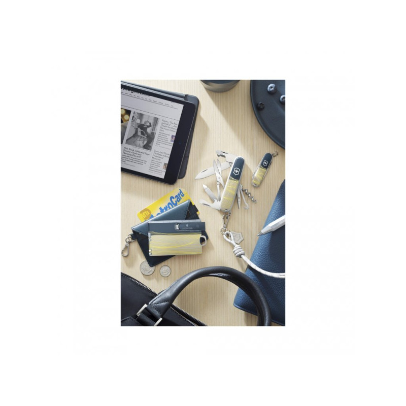 Karta je vybavena 10 funkčními nástroji, vše pěkně pohromadě a bez nutnosti hledat pilníček či nůžky na dně kabelky. Kartu můžete nosit v elegantní kapsičce s karabinkou, kam snadno vložíte i kartu platební nebo doklady. Vše je uloženo v dárkové krabičce.
