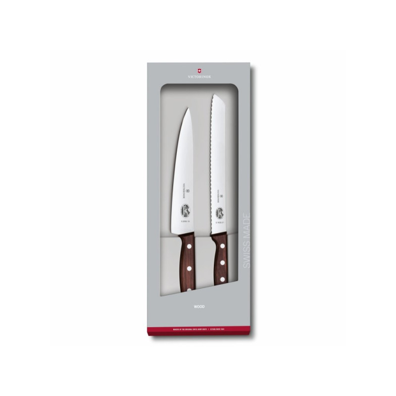 Výjimečné řemeslné zpracování se snoubí s všestranností při krájení a porcování. To je sada kuchyňských nožů s rukojeťmi z javorového dřeva s jedinečnou kresbou. Povrch dřeva je ručně vyĺeštěn pro pohodlný úchop. Oba nože společně plně pokryjí úkoly každé kuchyně. Nůž na chleba si poradí s jakýmkoli pečivem, zatímco kuchařský nůž zkušeně nakrájí vařené i grilované maso, aniž by narušil jeho přirozená vlákna.