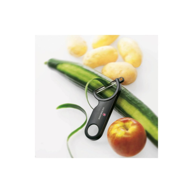 Ať už připravujete brambory, okurky, jablka nebo mrkev, škrabka Victorinox umožní každému kuchaři snadno odstranit jen tu nejtenčí vrstvu slupky. Nerezová čepel má jednobřitou, otočnou konstrukci a vedle čepele je v syntetickém materiálu malý otvor (boční odstraňovač) pro odstranění nežádoucích částí. A pro maximálně snadné použití byla škrabka navržena tak, aby ji bylo možné mýt v myčce nádobí, takže ani po práci s ní vás nic nebude zdržovat.