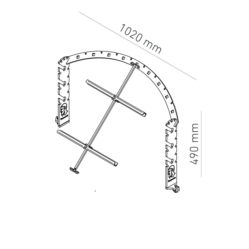 Rozměry výrobku 1020 × 600 × 220 mm, 725 mm (délka kříže), 470 mm (šířka kříže)