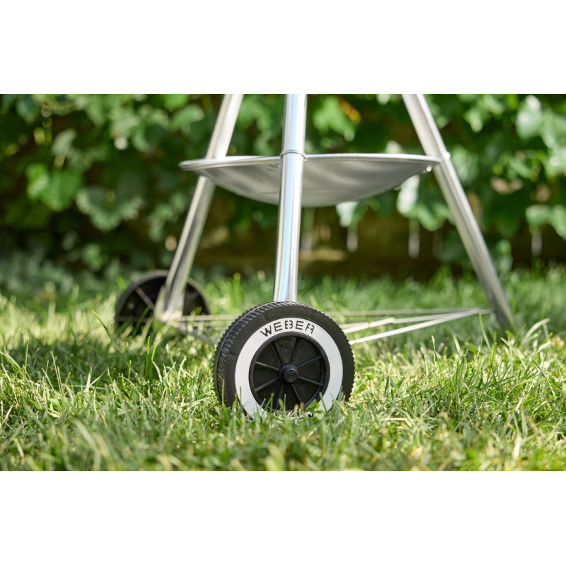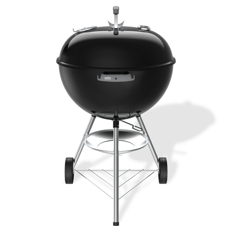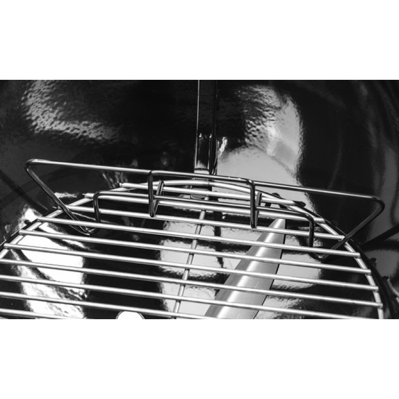 Díky vylepšeným průduchům v kotli nyní můžete jednoduše grilovat. Díky porcelánem smaltovanému poklopu a kotli je gril odolný vůči proměnám počasí a zároveň se lehce čistí. Hluboký popelník zabrání, aby se popel rozletěl vlivem větru a zůstal na jednom místě, o odpad z uhlí a briket během grilování se vůbec nemusíte starat. Až po samotném grilování jednoduše sundáte misku a popel bezpečně vynesete. Tento One-Touch čistící systém také funguje jako větrací otvor, pomocí kterého regulujete přívod kyslíku do kotle grilu a tím i teplotu. K další regulaci slouží také otvory na poklopu v grilu. Výhodou grilu je také zabudovaný teploměr v poklopu grilu. Poklop grilu je také vybaven madlem z odolného duroplastu s tepelným štítem, se kterým vám nehrozí riziko popálení. Poklop je vybaven háčkem, díky kterému nemusíte poklop nikam odkládat, pouze ho pověsíte na kotel. Háčky na náčiní najdeme na madle z duroplastu. Gril má 2 robustní kola pro snadné převážení.