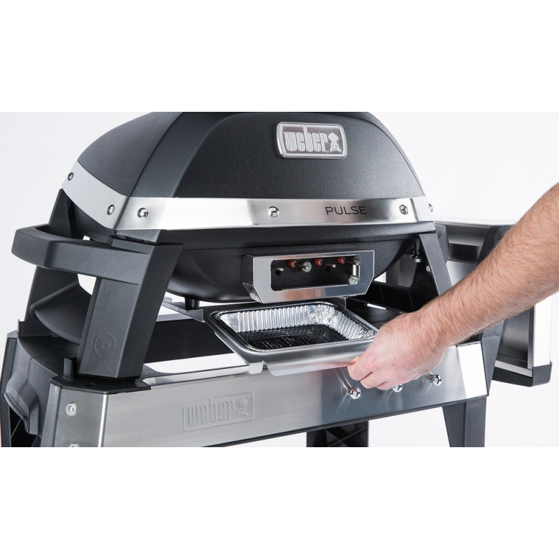 Grilování s grilem Weber PULSE je extrémně jednoduché a pohodlné. Je promyšlen do posledního detailu a bude ozdobou Vašeho grilování - perfektní design, kvalita zpracování, technika. Dvě plynule nastavitelné topné spirály, které jsou uvnitř grilu, zaručují velký výkon a dosažení stoprocentního výsledeku. Na jedná spirále můžete dělat steak při vysoké teplotě a na straně druhé podusit zeleninu. Hodnotu teploty lze sledovat na přední straně grilu, kde je umístěn LED display s panelem. Perfektní ugrilování zajistí již integrovaný Weber iGrill, který vás provede celým procesem vaření. K zabudovanému iGrillu lze připojit až 4 sondy (2 je součástí balení) a propojit je poté s aplikací ve Vašem chytrém telefonu. V aplikaci na svém mobilním zařízení tak budete mít v reálném čase zobrazenu teplotu Vašich grilovaných pokrmů. Kromě toho také oceníte velice snadné čištění a údržbu. Veškerý nepořádek tak seškrábnete do odkapové misky pod grilem a jednoduše vytáhnete. Na to doporučujeme použít náčiní, které je praktické a neponičí vanu grilu.