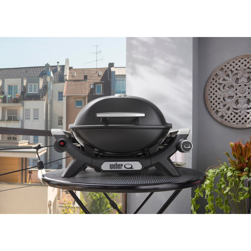 Tento plynový gril je inovace plynových grilů Weber Q. Je skladný, přenosný a lehký, díky připojení na plynovou kartuši. Ale i přes malé rozměry, nabízí vysoký výkon. Inovace nových plynových grilů Weber Q spočívá především v samotné konstrukci. Gril má vyšší poklop, takže se do něj vejdou i větší kusy masa např. celé kuře, což byl dříve problém. Mají také trošku jiný tvar grilovací plochy a tak ve výsledku mají grily ve stejné velikostní kategorii oproti svým starším modelům o 14 % grilovací plochy navíc. Hořáky dostaly také vyšší výkon a tak hravě zvládnou ugrilovat i steak.
