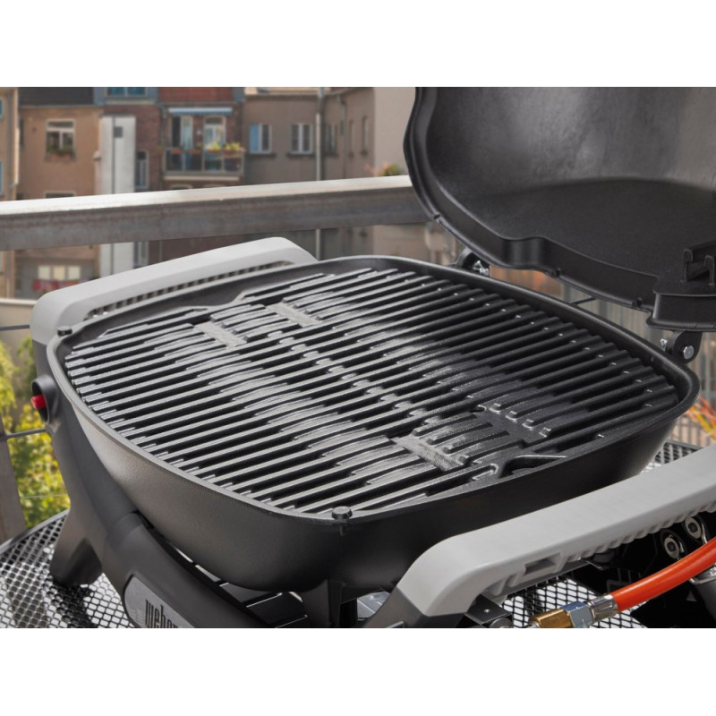 Plynule nastavitelný hořák z ušlechtilé oceli zajišťuje vysoký výkon grilu, který je rovnoměrně rozmístěn pod celou grilovací plochou. Gril stačí zapojit k plynové kartuši, otočit knoflíkem a díky piezo zapalování budete mít gril hned připraven k použití. Kartuše se vkládá do připraveného košíku, umístěného na grilu. Nemusíte tak řešit starost při přenášení grilu. Gril lze také přestavět na připojení s PB plynovou lahví a to pomocí sady na přestavbu. Plynový gril disponuje dvoudílným litinovým roštěm a také miskou na odkapávající šťávy, která se nachází uprostřed grilu. Misku lze tak jednoduše vyjmout ze přední strany grilu. V poklopu je také teploměr pro bezchybnou kontrolu grilovaných pokrmů a pro lepší zavedení je v poklopu vestavěný držák pro Weber Connect Smart Hub (prodává se samostatně).