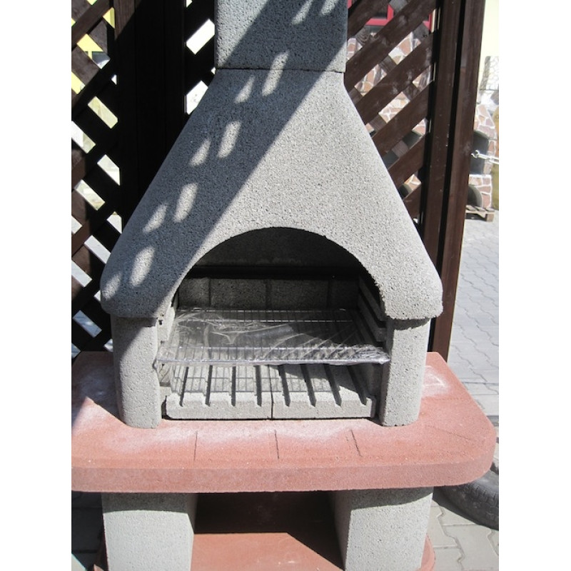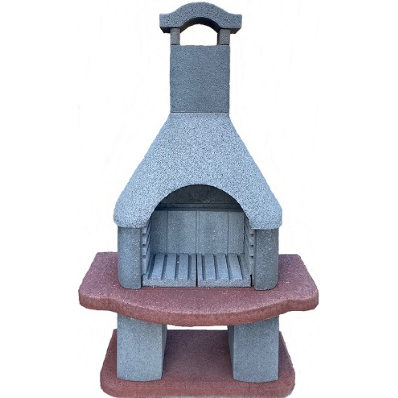 s probarvenou základovou a pracovní deskou. Výškově stavitelný chromovaný grilovací rošt,