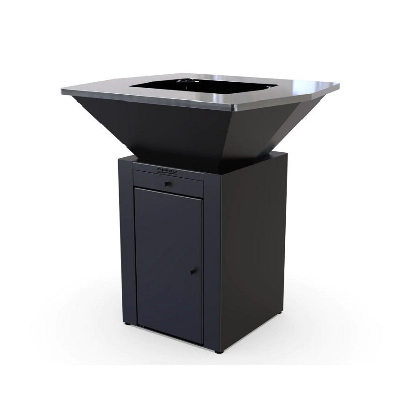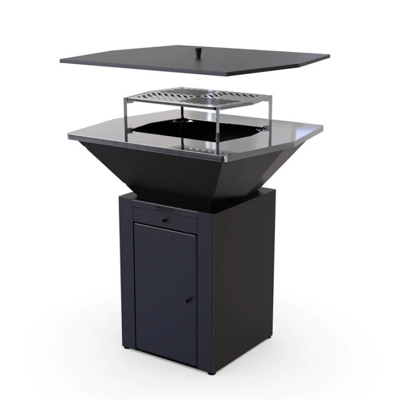 Základna topeniště s uzavřenou skříňkou vám umožní pohodlné uložení grilovacího příslušenství a výsuvná zásuvka je rychlý způsob, jak se zbavit popela. Přidejte k setu rošt a budete moci grilovat nejen na topné desce, ale i přímo nad ohněm. Kryt Vám umožní dodatečně chránit topnou desku proti vlivu povětrnostních podmínek.