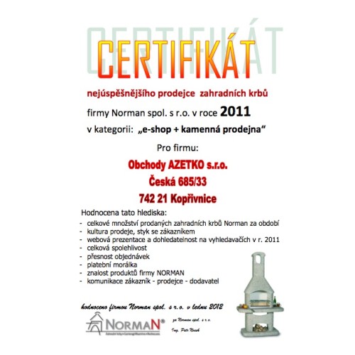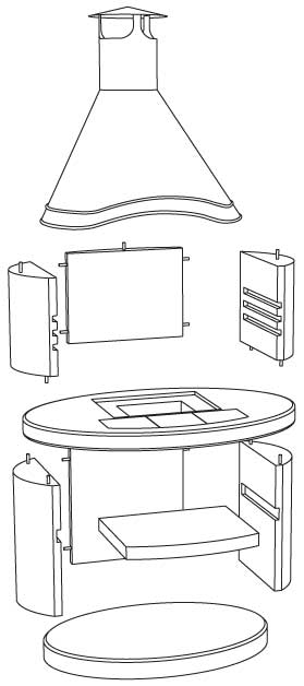 Dvoubarevné provedení osvědčeného modelu Arcus z řady Variant. Barevná kombinace bílošedého jemného vymývaného povrchu se stejným povrchem barvy terakota a se střechou z nerezu vytváří klasický zahradní krb, harmonicky sladěný s novou, moderní tváří. Základová deska již ve standardním provedení.
