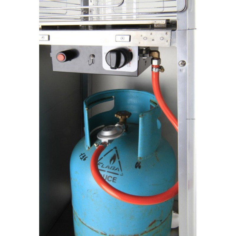 Topidlo je vybaveno plynulou regulací výkonu, piezozapalováním, pádovou pojistkou a kolečky pro snadný transport.